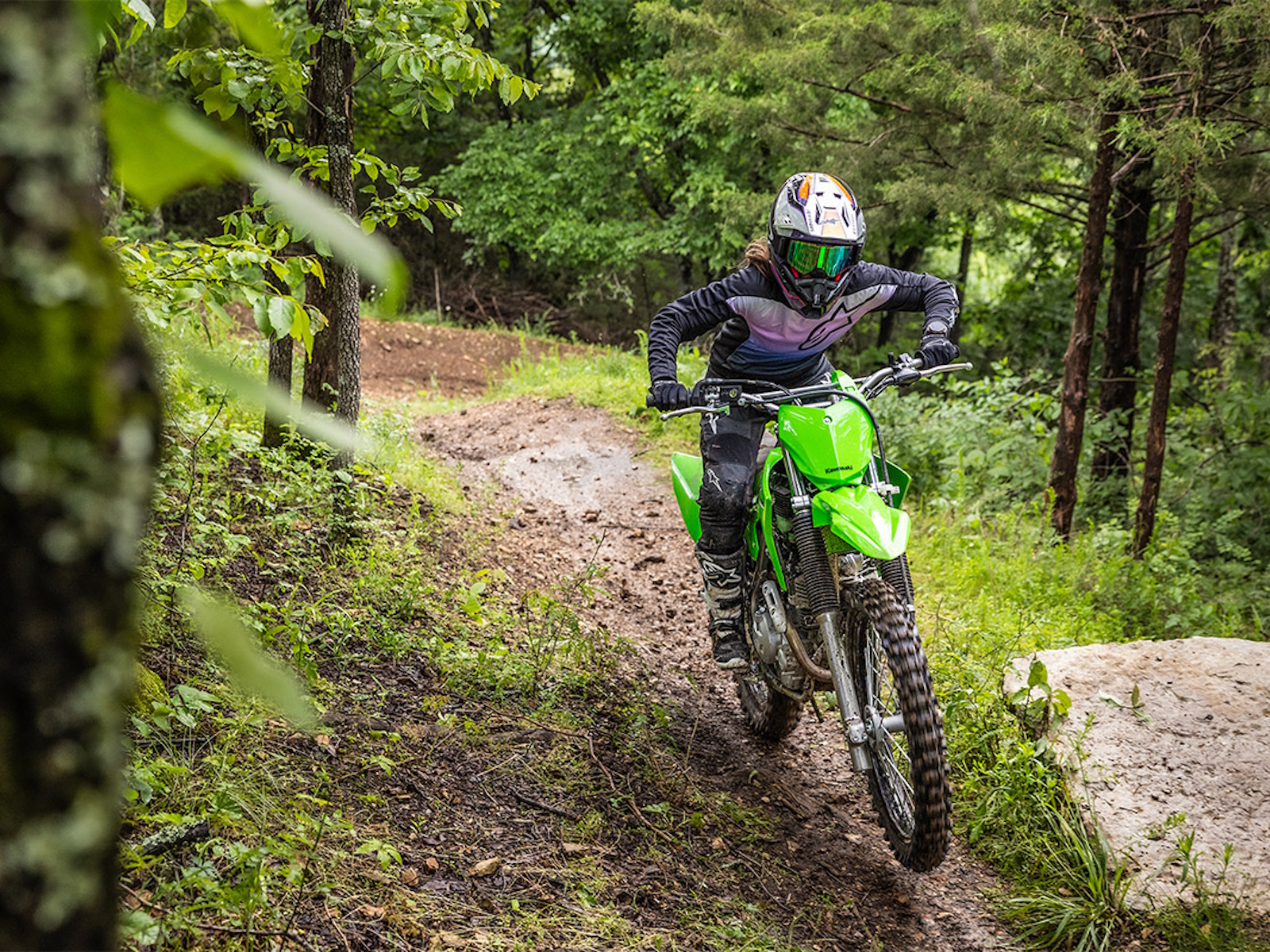 The full-size fun of the KLX®230R trail bike means it's time to Get Out And Play. Take on terrain with nimble handling and plenty of power, while kicking up some serious dirt along the way. Long-travel suspension paired with responsive low-speed control give this bike a sporty feel that stands out among the rest. Finished with styling inspired by the KX™ lineup, the highly capable, lightweight package of the KLX230R brings a heavy dose of fun to every off-road ride.